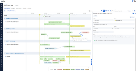 Clarity’s layered roadmaps align AI initiatives across business and technical domains, with a dedicated swim lane to map out workforce development, upskilling, and training plans.